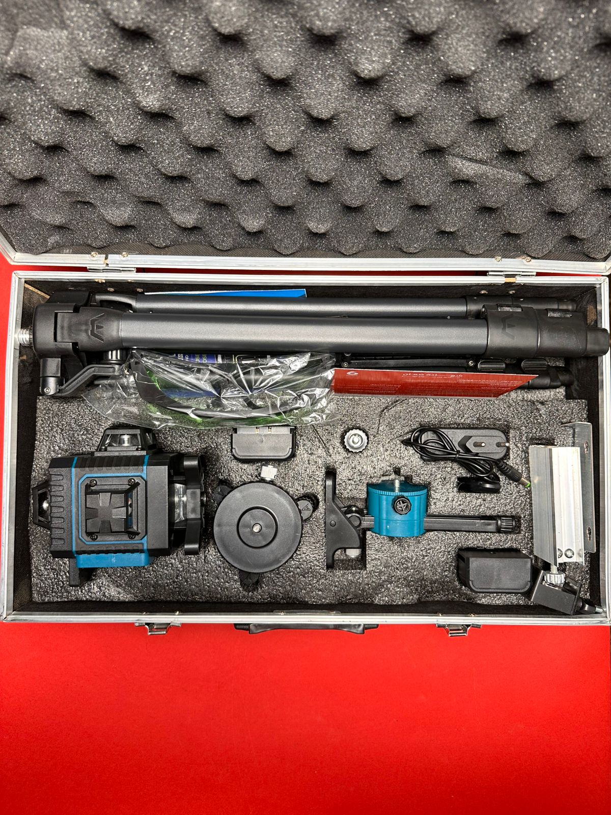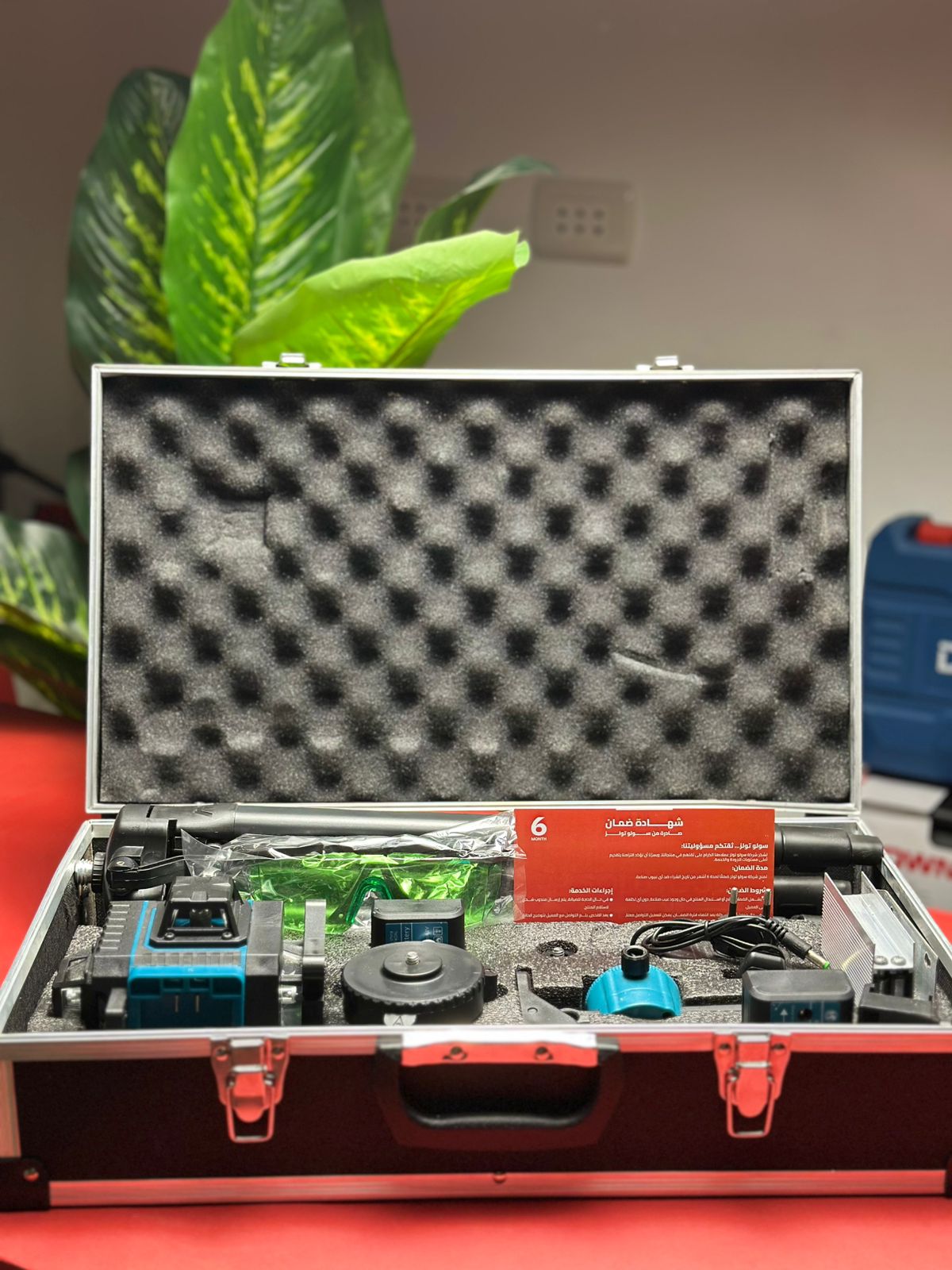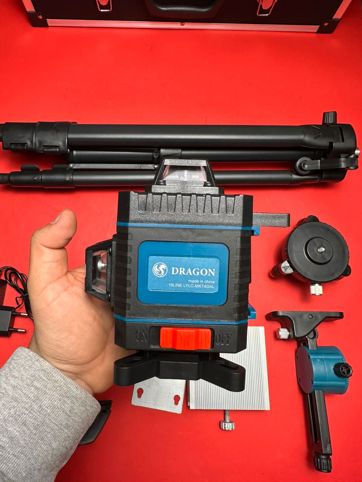ميزان ليزر احترافي من Dragon بقدرة عرض 16 خط بزاوية 360 درجة لقياسات دقيقة في أعمال التشطيب، السيراميك، والديكور. يتميز بمدى يصل إلى 30 متر، تشغيل ثابت، وتحكم سهل بفضل أزرار التاتش والريموت، مع بطاريات قوية وملحقات متكاملة للاستخدام الشاق.